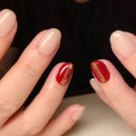 お仕事ネイルにワンポイントのレッドカラー