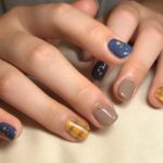 秋色ブルーとステッチチェックネイル