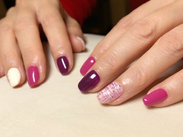 ピンク系ツイードネイル